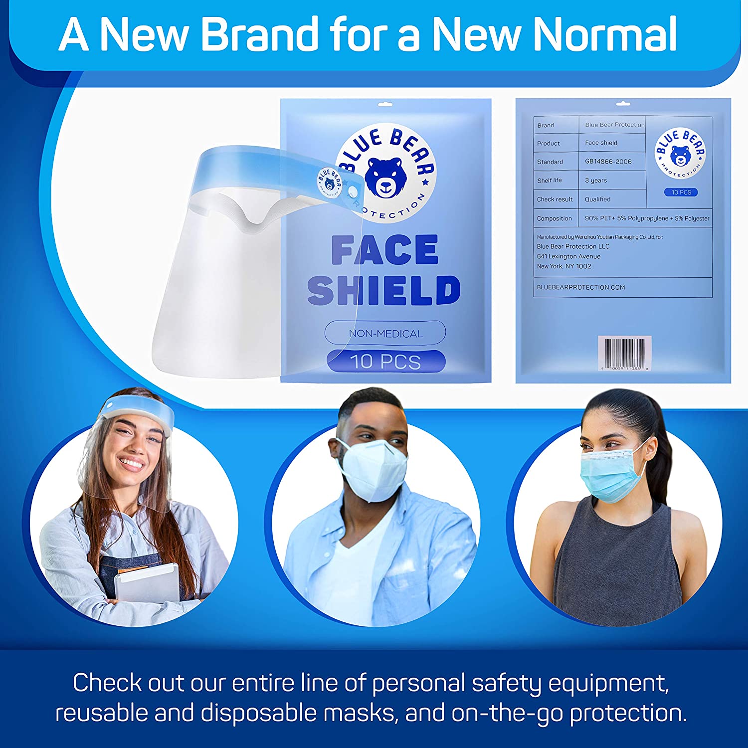 BLUE BEAR PROTECTION Face Shield Protection, Adult Face Shield, Protective Face Shields for Women and Men, Clear Face Shield, Face Shield Mask Reusable, Mask Shield (Pack of 10)