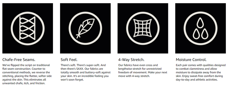 • SAXX MEN’S UNDERWEAR: Creating high quality men’s underwear to support guys in driving positive change in the world, we design game-changing underwear for men who are constantly challenging the status quo.
