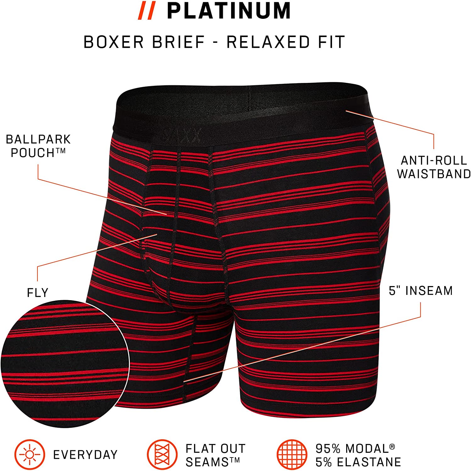 SAXX Underwear Men's Boxer Briefs – PLATINUM Men’s Underwear – Boxer Briefs with Fly and Built-In BallPark Pouch Support