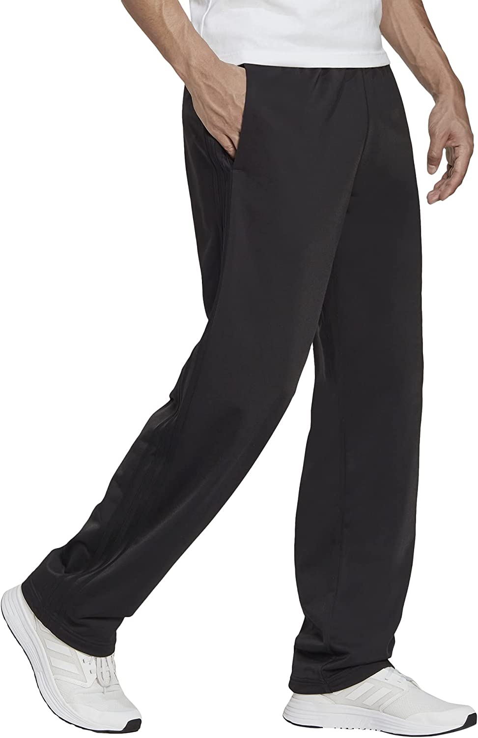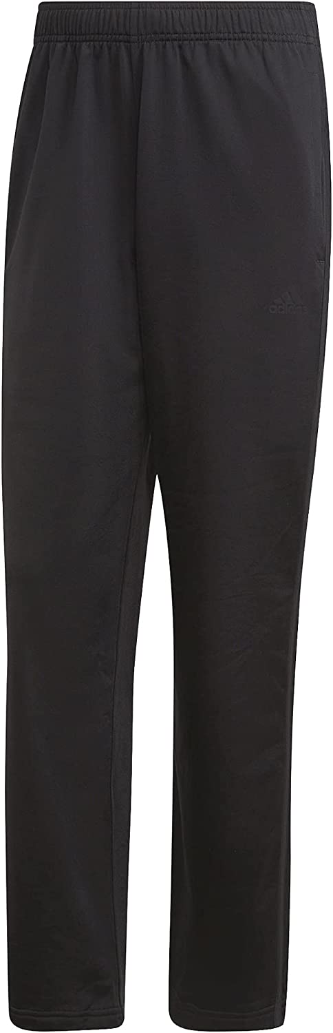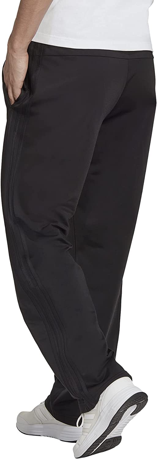 adidas 阿迪达斯 男式 Essentials 热身开放式下摆 3 条纹运动服下装, 黑白色