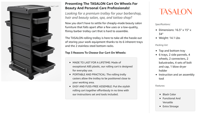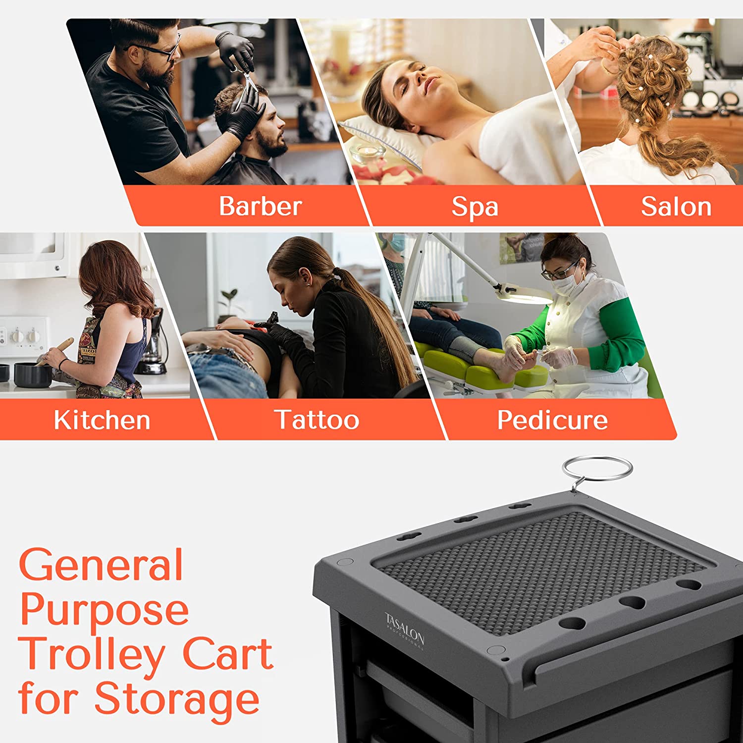 • ✅ ORGANIZE ALL YOUR BEAUTY SALON ESSENTIALS: As a professional, you'll need a mobile beauty trolley with plenty of space as your best assistant. That's why the TASALON rolling cart features 6 easy pull-out trays with two-way travel on both sides for efficiency.