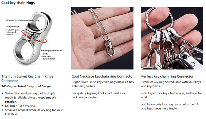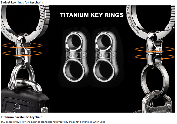 - DURABLE & WORRY-FREE SECURE -keychain rings Made of titanium alloy,lightweight but strong,corrosion and high temperature resistance,allergy free. Super Durable and Heavy Duty, lifetime using key chain rings.