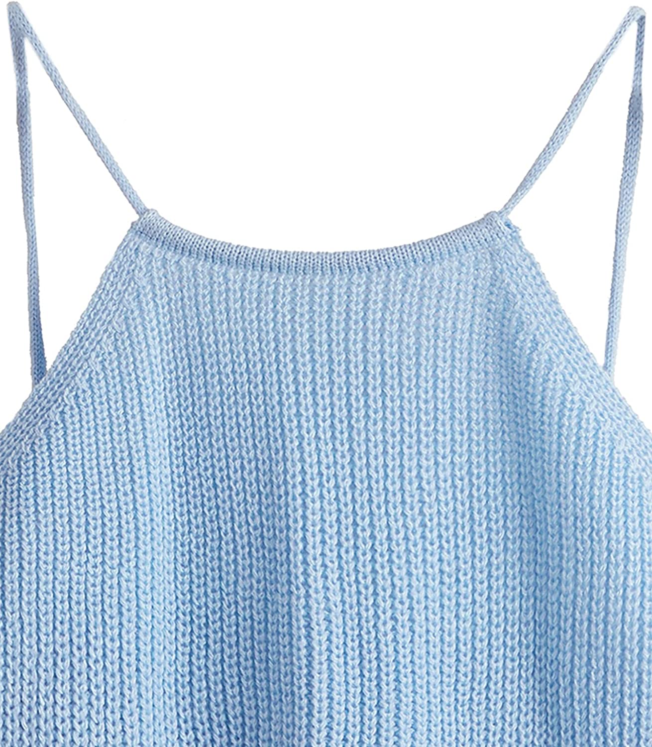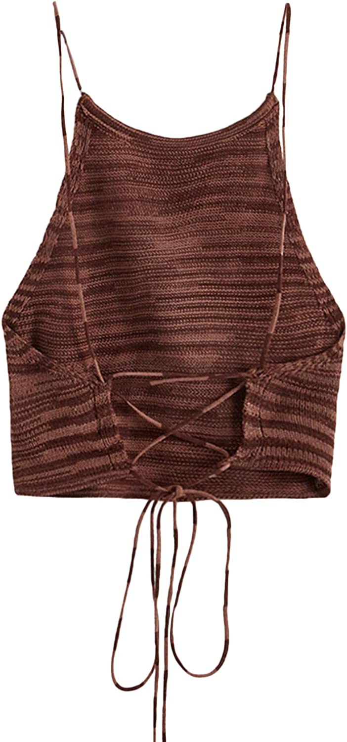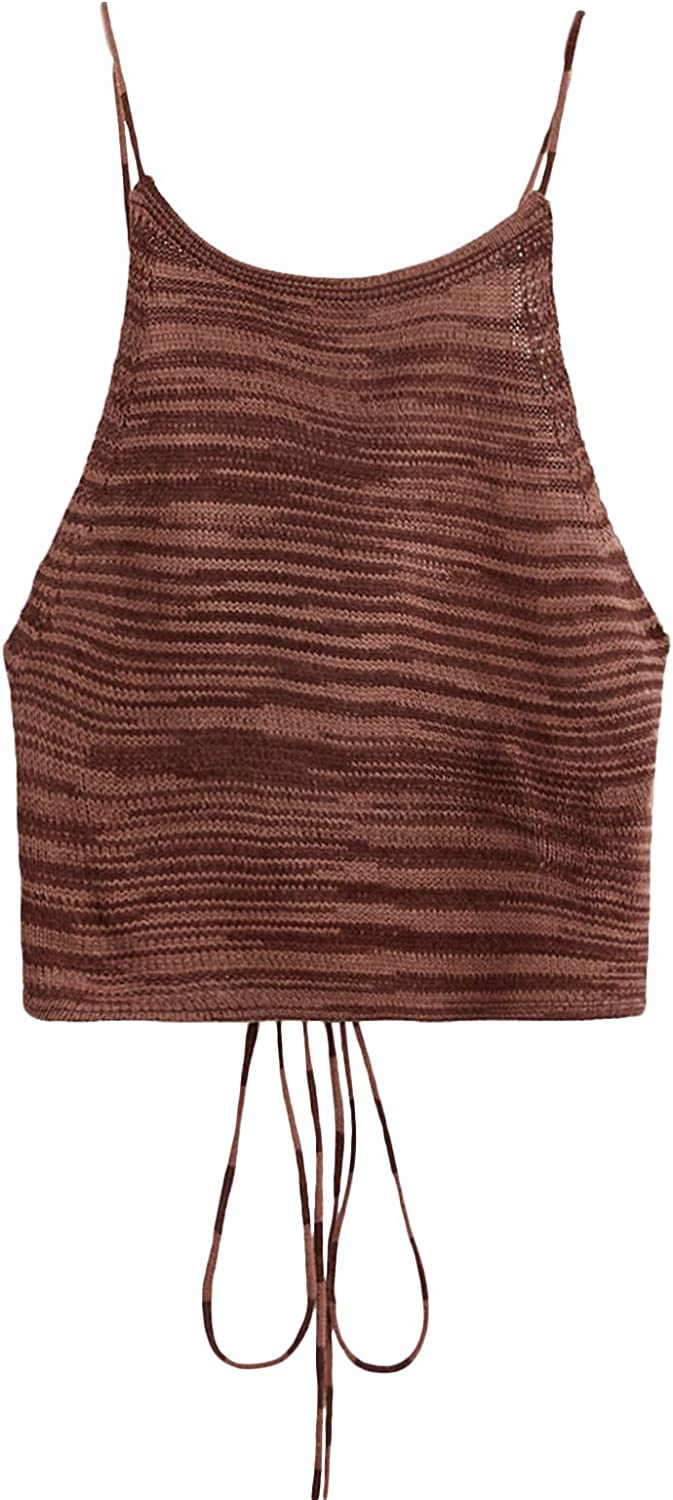SweatyRocks Women's Sleeveless Space Dye Knit Camisole Criss Cross Backless Crop Top