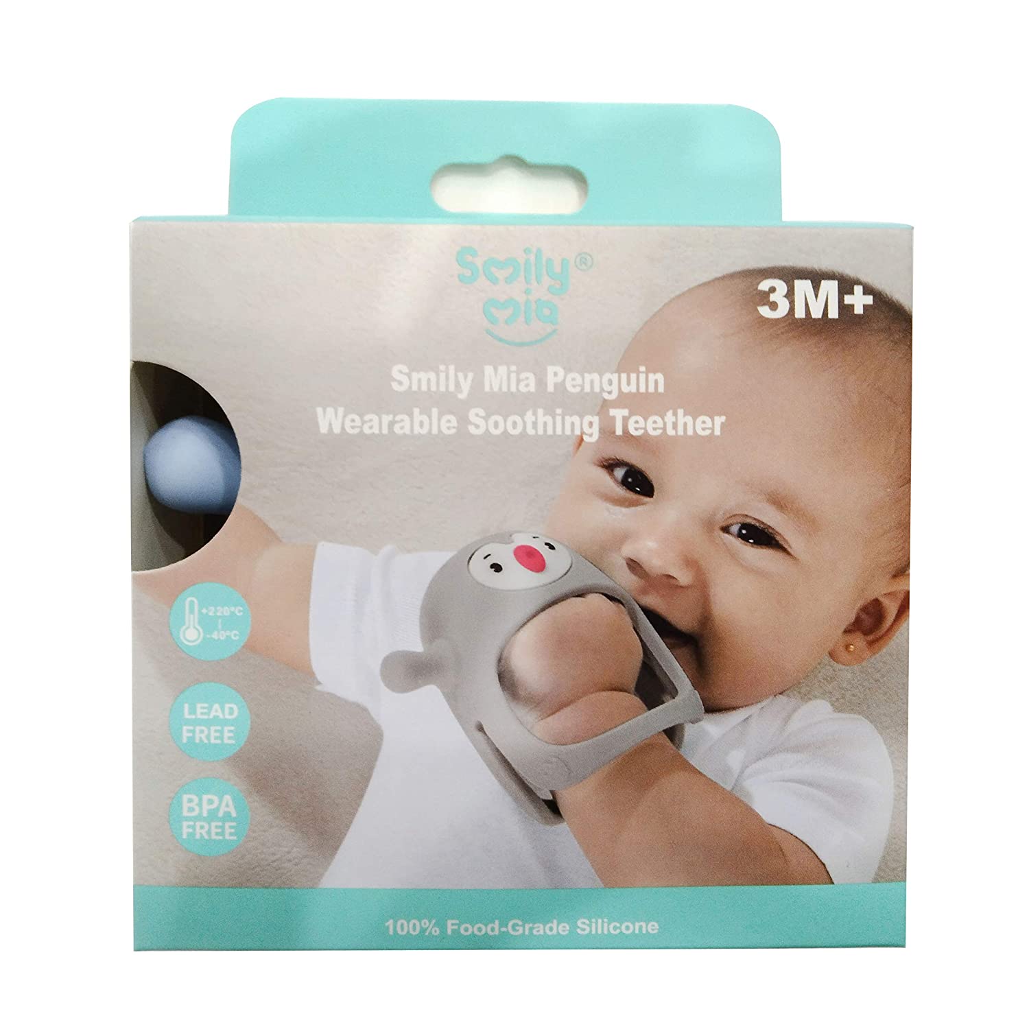 Smily Mia Penguin Baby Teething Toys for 3-6Months, Infant Handheld Pacifiers 0-6Months, 3Months Old Baby Must Haves, 4months Old Toys for Babies, Light Grey…