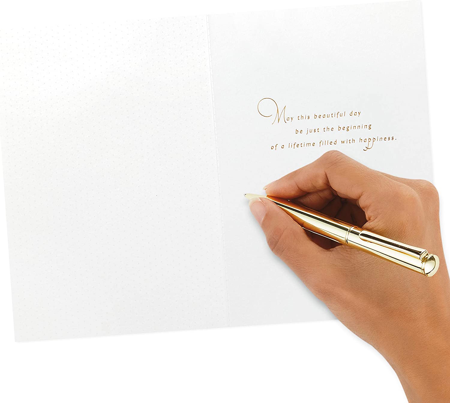 Send warm wishes to the newlyweds with this beautiful wedding card featuring paper craft embellishments that's sure to be a keepsake of their special day. A great pairing for a gift card or present, or a beautiful standalone offering. The Hallmark brand is widely recognized as the very best for greeting cards, gift wrap, and more. For more than 100 years, Hallmark has been helping its customers make everyday moments more beautiful and celebrations more joyful.