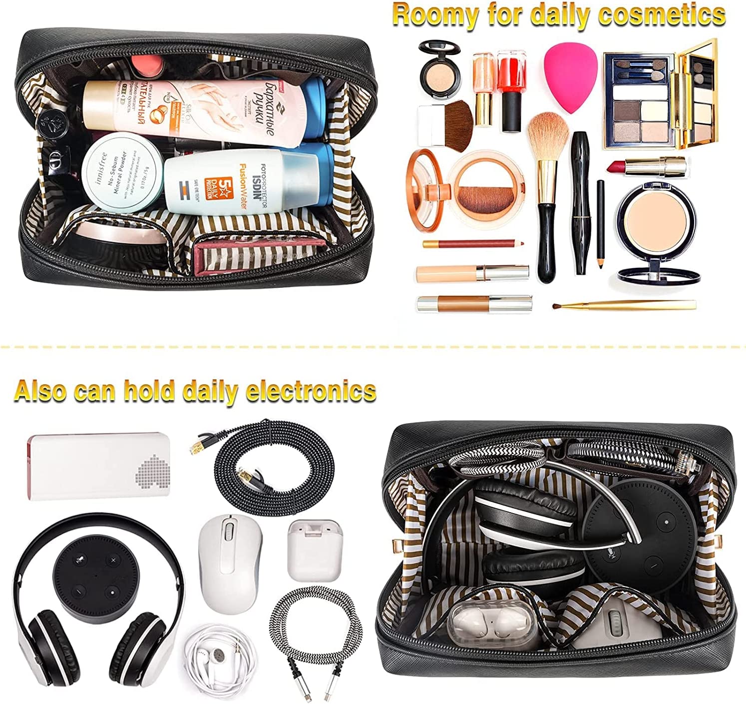 • Additional Clutch Bag: The additional small makeup organizer is made of soft PU leather, has smooth zippper on top closure, polyester lining inside. The cosmetic organizer can store your jewelry, USB cable, SD card, Smart Speakers, Headset, Earbuds, Mouse, USB Charger or USB Flash Drive. This bundle is the best gifts for mother, birthday gifts for women, gift for friend, work wife gifts, for families and friends as Christmas day gift or Thanksgiving gift