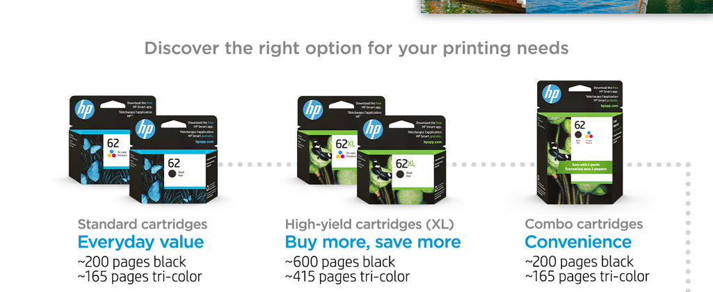 • Get ink your way: buy Original HP Ink Cartridges or save up to 50% and never run out with HP Instant Ink, the Smart Ink Subscription