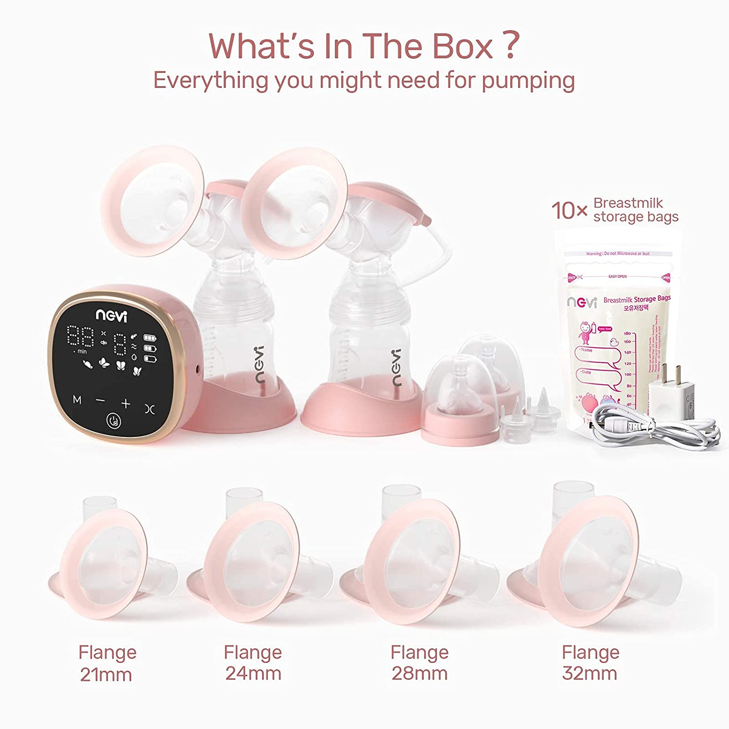 NCVI Double Electric Breast Pump 8782, Portable Anti-Backflow, with 4 Size Flanges, 4 Modes & 9 Levels, LED Display, 10 Breastmilk Storage Bags, Ultra-Quiet and Pain Free Breast Pumps