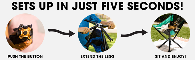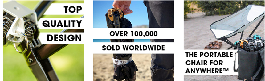 • Bottle sized outdoor chairs for anywhere: The Cliq foldable chair is almost the size of your drink bottle, making them great folding chairs for outside, as you can take them anywhere conveniently.