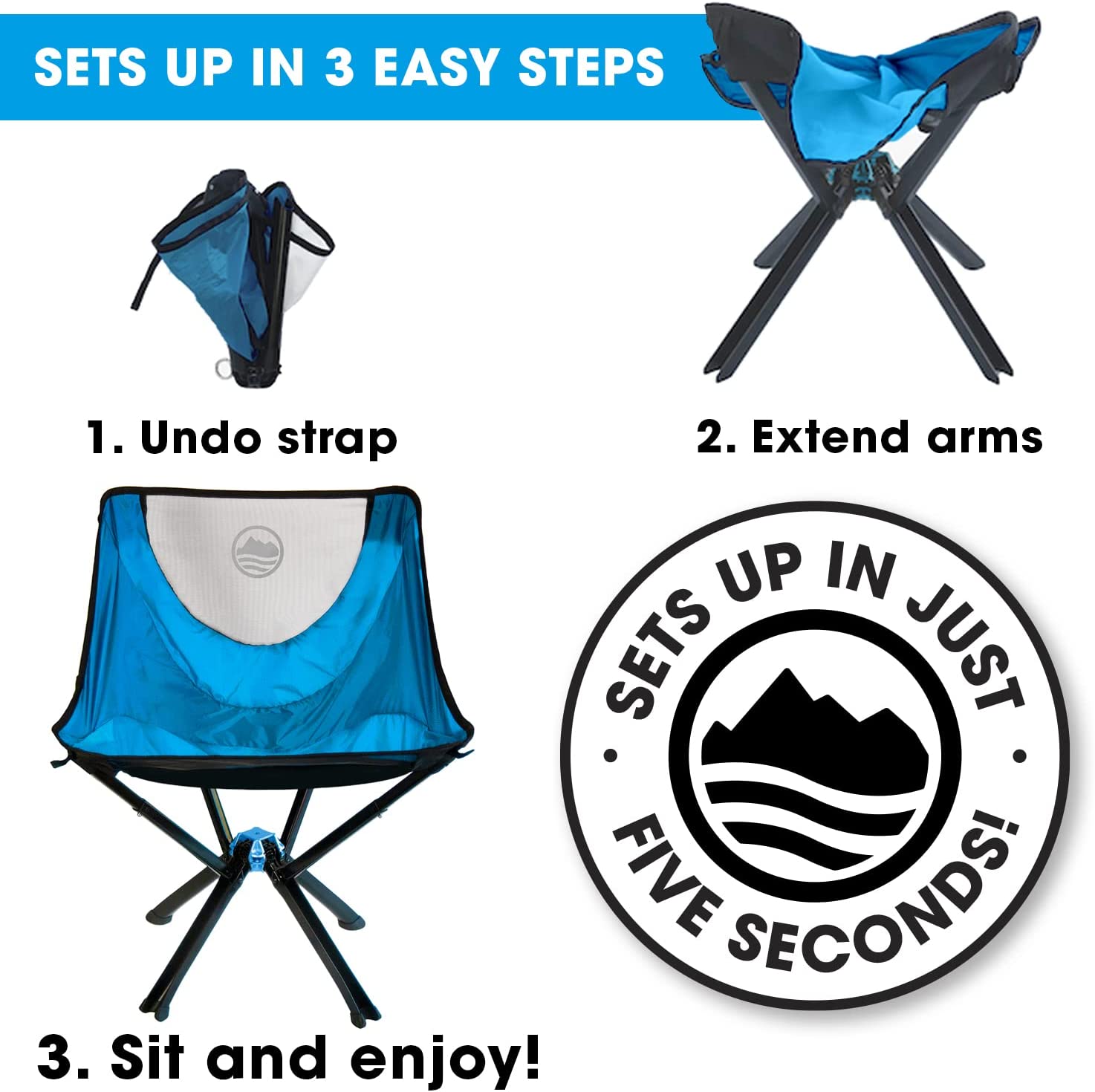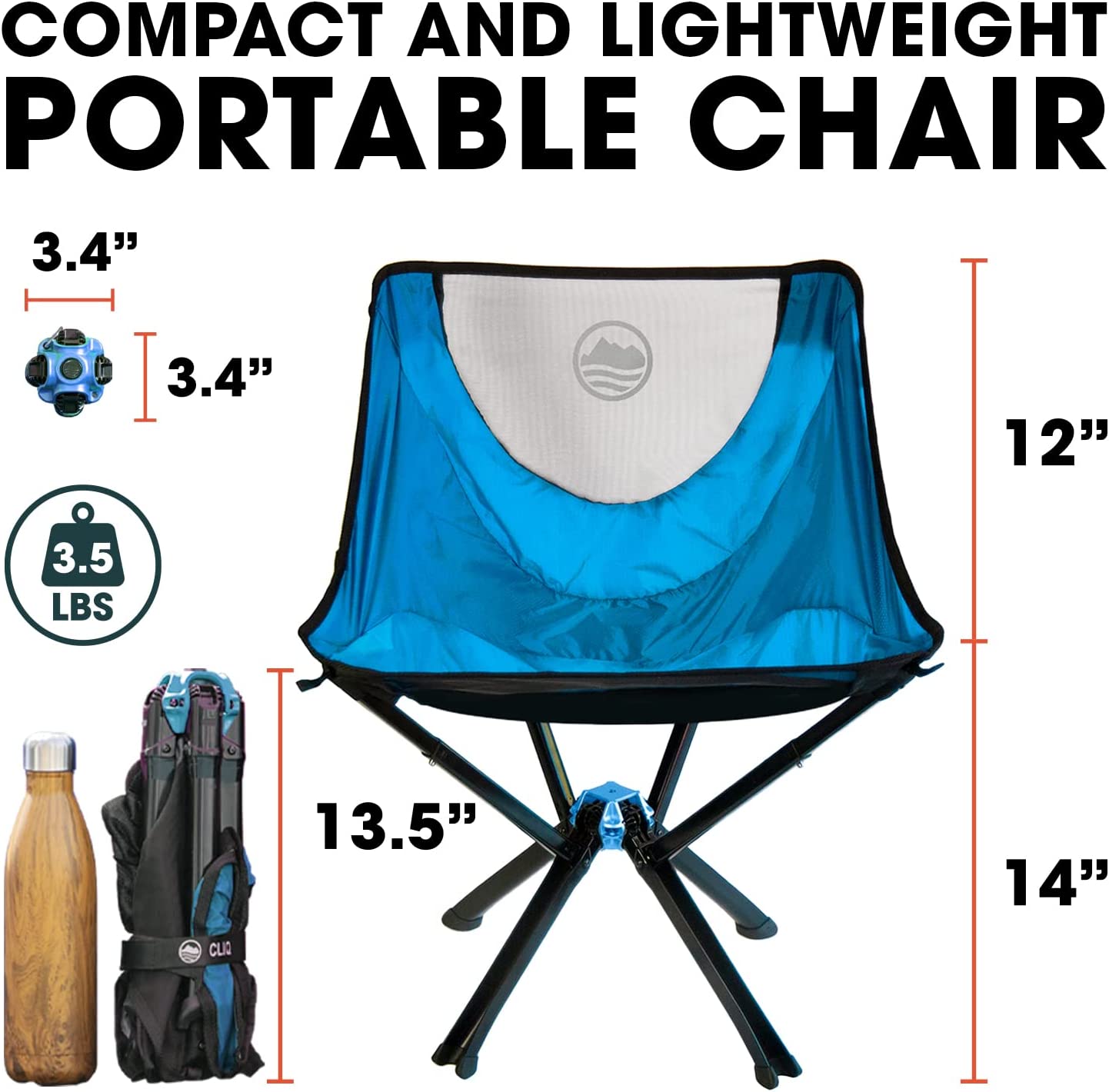 CLIQ Portable Chair Camping Chairs - A Small Collapsible Portable Chair That Goes Every Where Outdoors. Compact Folding Chair for Adults That Sets Up in 5 Seconds | Camping Chair Supports 300 Lbs