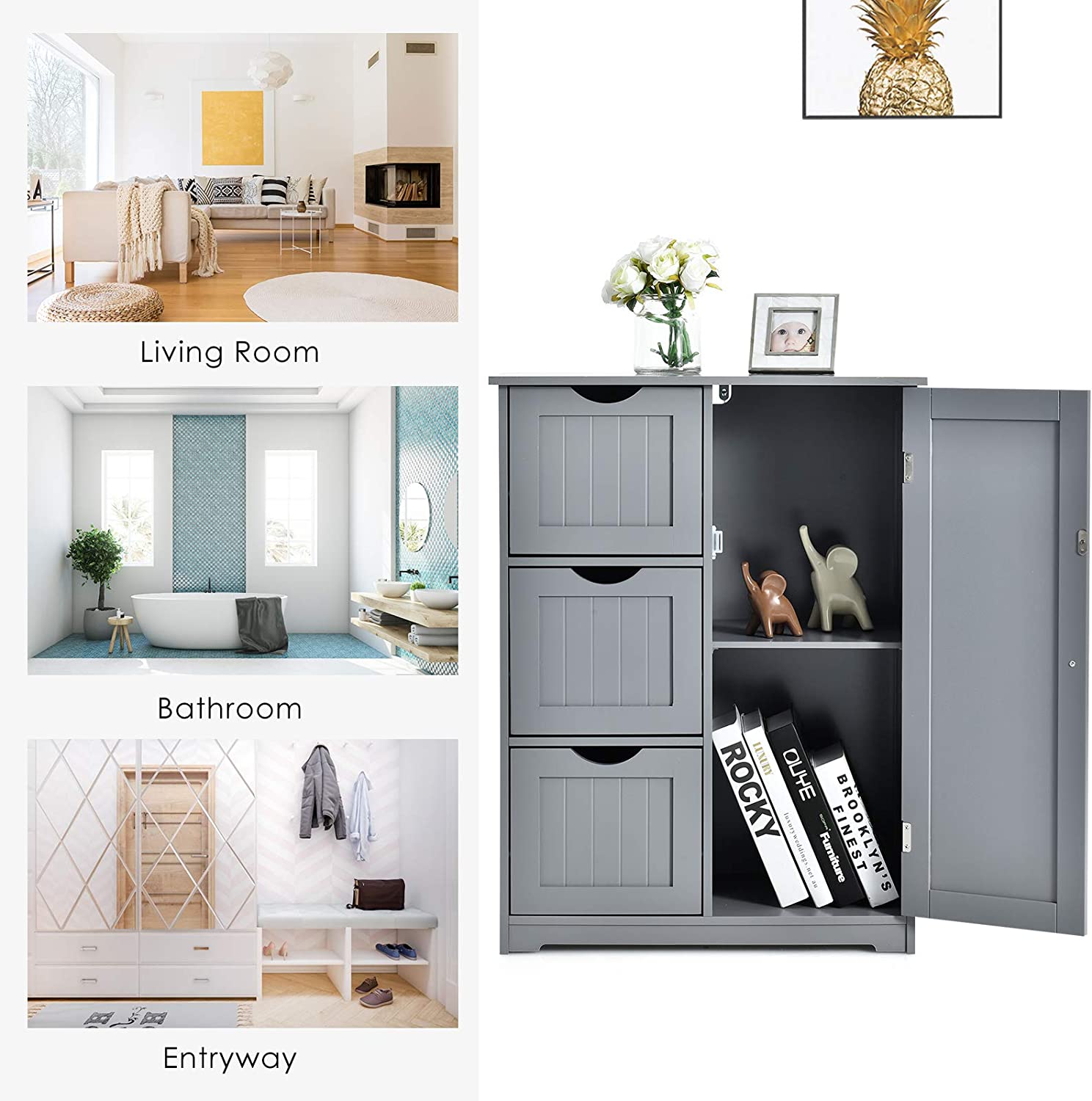 Large Storage Space: Comes with 3 drawers and a cupboard, this storage cabinet will provide spacious space for your items such as toys, books and bottles. And the top of cabinet can display decors. In addition, the door is equipped with magnetic snap to prevent accidental opening.