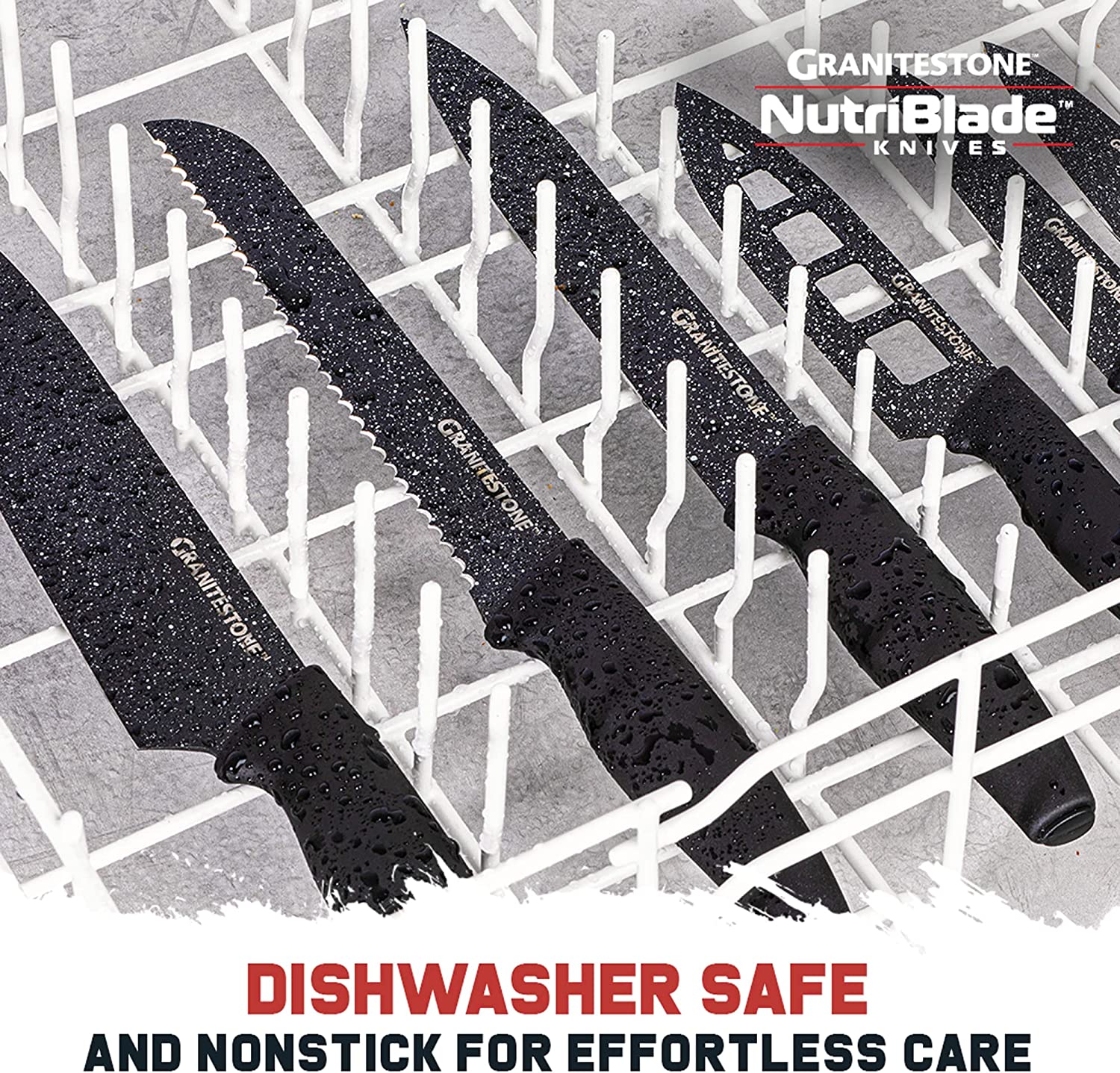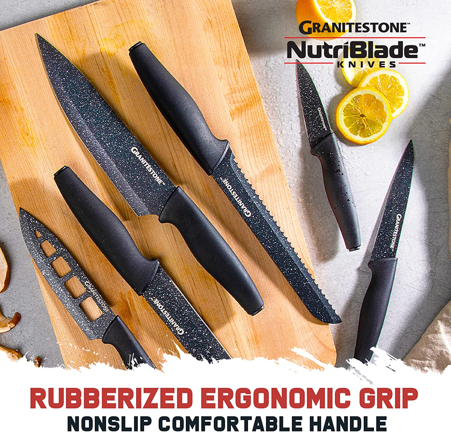 Granitestone Nutriblade 6 PC Knife Set, Professional Kitchen Chef’s Knives with Ultra Sharp Stainless Steel Blades and Nonstick Granite Coating, Easy-Grip Handle, Rust-proof, Dishwasher-safe, Black