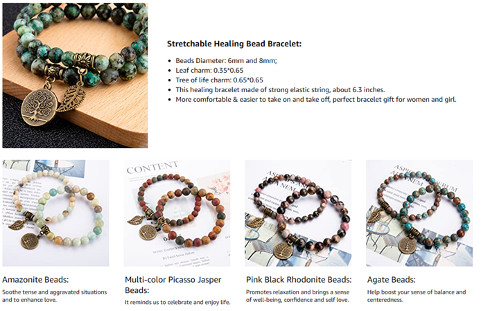• ?Natural stone bracelets for women: Each beads in this fashion&beautiful bracelet are hand picked and strung on high quality elastic stretch cord to ensure the best quality. Durable and flexible.Each bracelets set with a bronze tree of life and leaf charm.Great for daily wear, anniversary,party etc. Please note natural stones vary in colors. Each bead is unique. You will receive the similar item as picture shown.