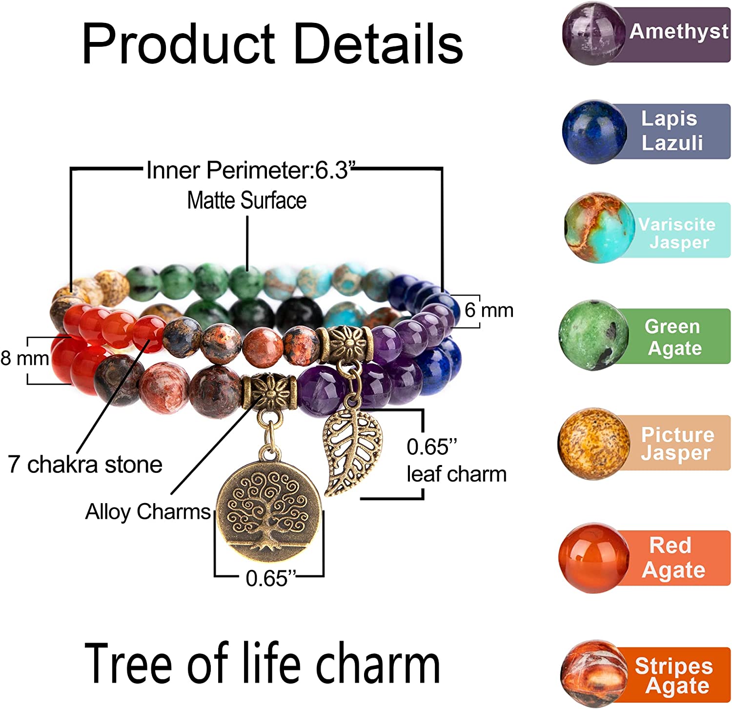 • ?Product description: Total Length of beaded bracelet: about 6.3''. Beads: Tree of life charm bracelet: 8mm. Leaf charm bracelet:6mm. The item weights about 33-37 grams for each healing bracelet,light weight and comfortable for wearing. Perfect for women and girls.