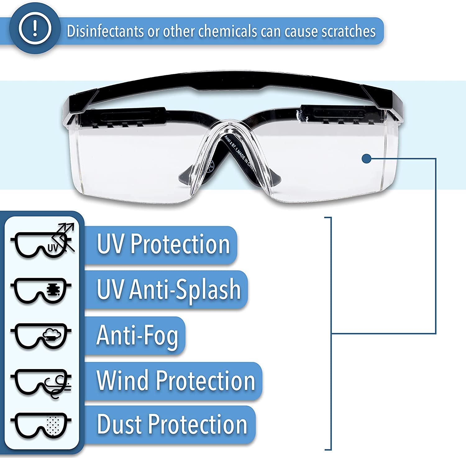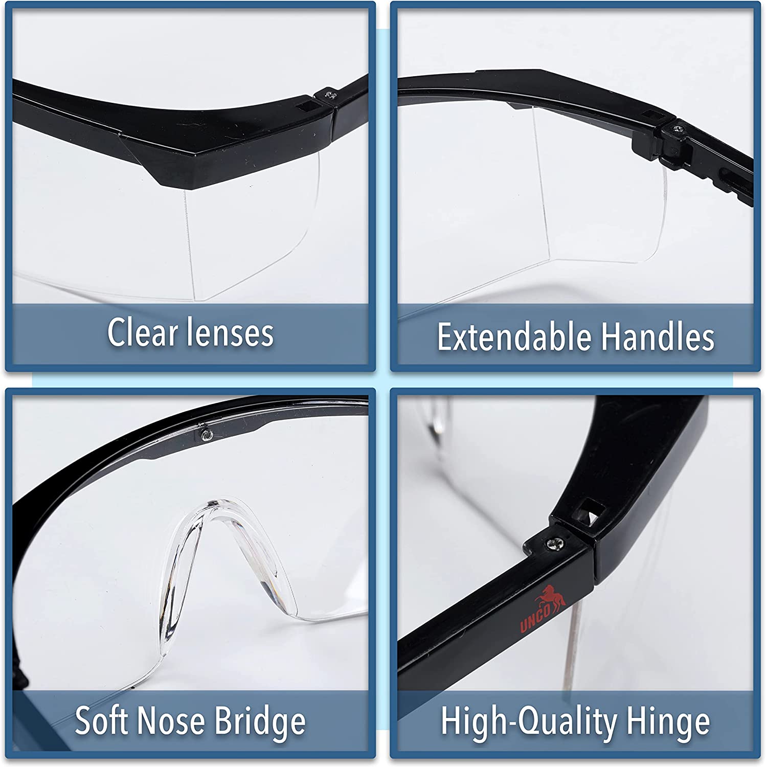 UNCO-Safety Glasses, Anti Fog Safety Glasses with Adjustable Arms, Safety Glasses Anti Fog, Clear Safety Glasses, Lab Safety Glasses, Eye Protection Glasses, Protective Eyewear, Work Glasses