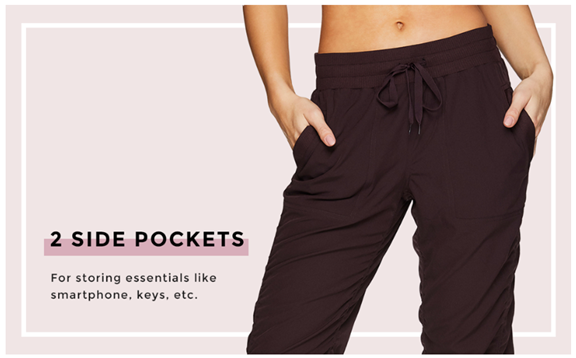 Elastic waistband and drawstrings at the waist and leg openings for a more customized fit