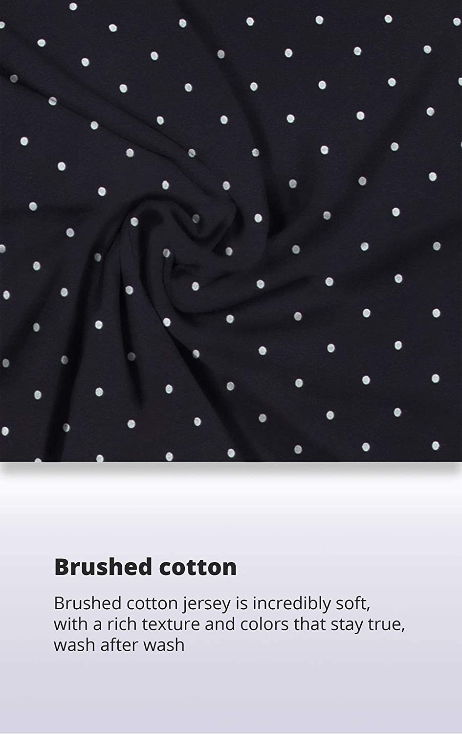 Premium Quality - PJ set is made with machine washable premium lightweight 100% cotton jersey and double brushed for softness; wear it and love it for years to come; available in rich solids and a variety of polka dot styles.