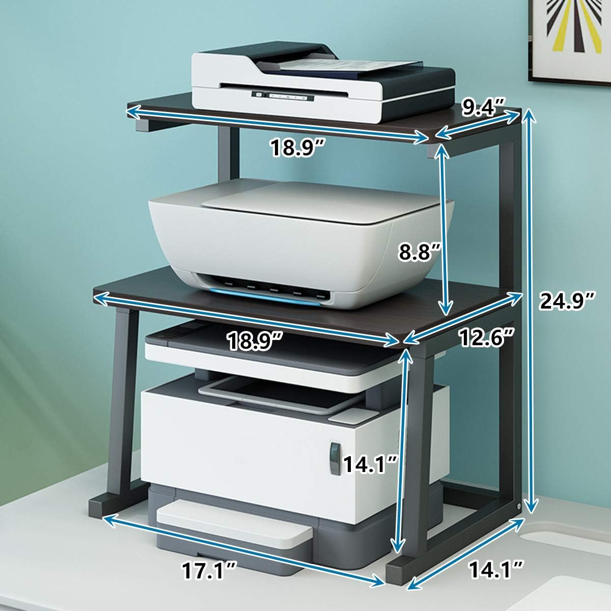 - 【3-TIER DESIGN】Our desktop printer stand comes with a 3-tier design. You can place the printer on the lower layer with more space, and place office supplies on the other two layers. The 3-tier design can save more space and provide a better storage effect.