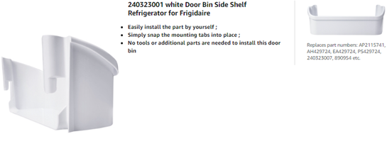 - ❤PART NUMBER 240323001 : The refrigerator white door bin Bottom door bin replaces numbers AP2115741, AH429724, EA429724, PS429724, 240323007, 890954 etc. ❤❤❤Not all Frigidaire refrigerators are suitable. If your Frigidaire refrigerator model starts with "LFSS" or "FGSS", then the 240323001 door bin will not be compatible.