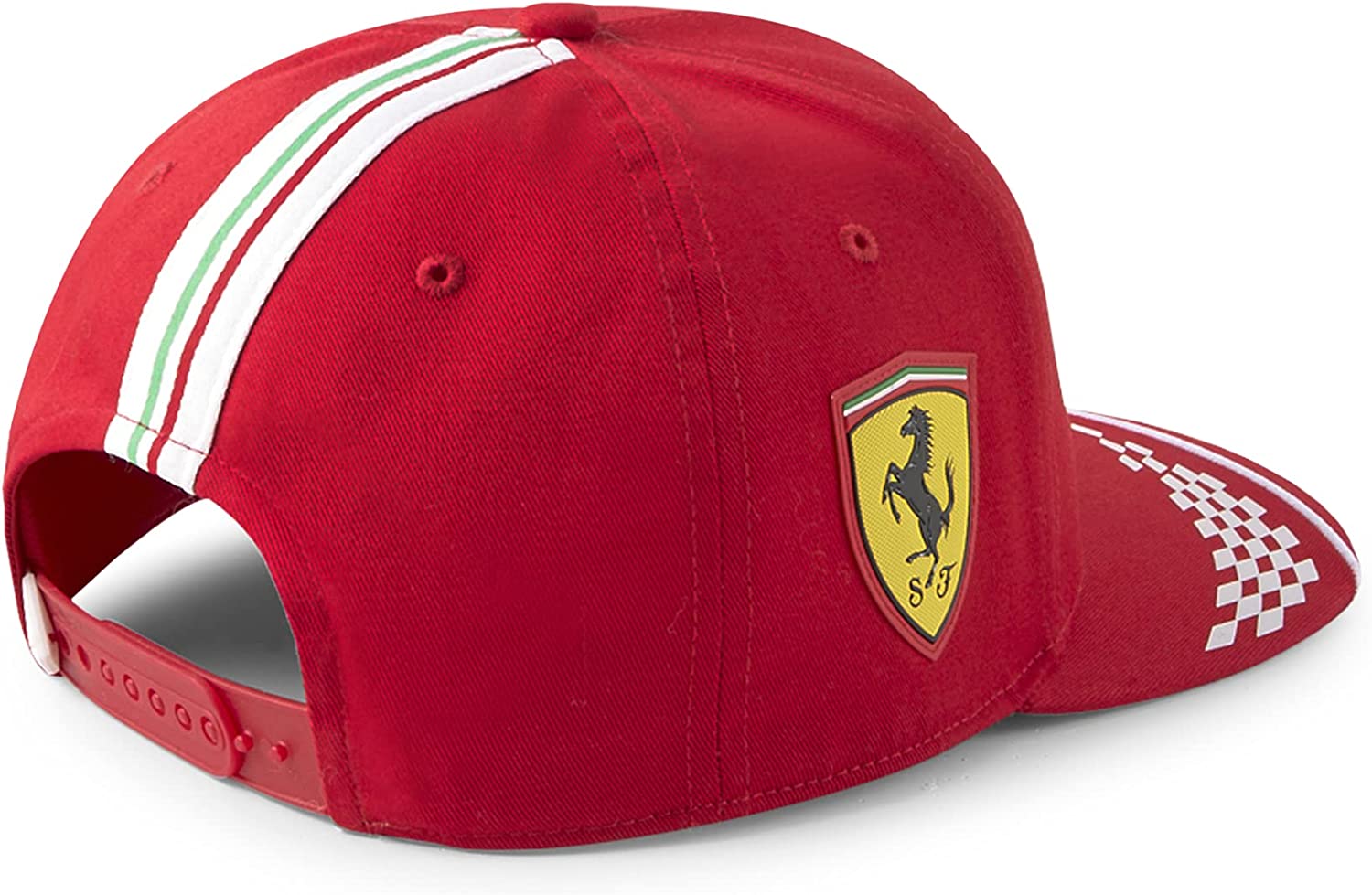 Show your support for your favorite athlete and the Scuderia Ferrari racing team with the crisp, clean lines of this classic cap. In bold colours, with an F1 flag-inspired visor and standout logos, you'll be the trendiest fan around!