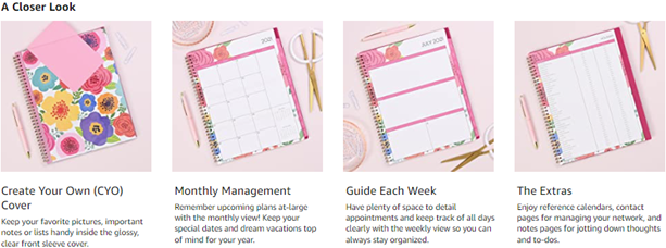 Plan your year in style with the beautiful florals and bold color palette of the 2021-2022 academic year Mahalo collection. This stylish CYO (create your own) cover planner will keep you organized everywhere you go. Add in your favorite photos, sentiments, notes or memories to the clear cover pocket, and keep organized with dated weekly and monthly pages inside for easy scheduling. Fresh page designs add a touch of style and offer plenty of room for all of your important information. Designed with practicality and ease of use in mind, this academic agenda's monthly calendar tabs allow for easy access to each month’s plans while weekly views offer ample writing space for detailing each day. High quality white paper provides clean writing space for jotting down your appointments, to-dos and reminders. Durable coated tabbed dividers are long lasting and make accessing information a breeze. Use this dated academic planner to keep track of your appointments, and to write down notes and ideas in one place. Premium quality covers and twin-wire binding provide reliable durability for daily use. Stay on track throughout the academic year with this 8.5 x 11 planner dated July 2021 - June 2022. Mix and match with other Mahalo Collection planning products from Blue Sky to organize your daily life. Blue Sky creates modern and sophisticated organizational planners and calendars to fit the scheduling needs of busy people - whether it’s for business professionals, college students, teachers, or anyone with appointments to make note of. Keep your life organized with our full line of products including desk pad calendars, wirebound tabbed weekly and monthly planners with contacts and notes pages to accommodate your scheduling needs, and laminated two-sided wall calendars, all in a variety of colors and patterns to suit your lifestyle and personality.