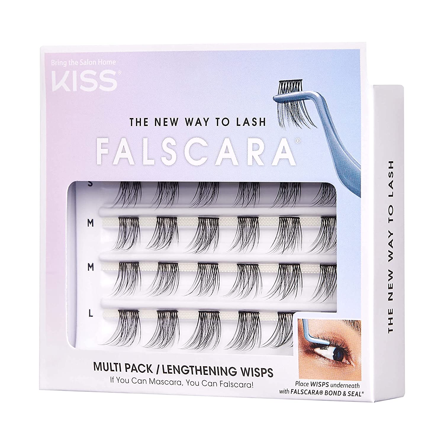 KISS Falscara DIY Eyelash Extension Lengthening Wisps - Featherlight Synthetic Reusable Artificial Eyelashes Multipack of 24 Mini Lash Clusters for that Authentic Eyelash Extension Look
