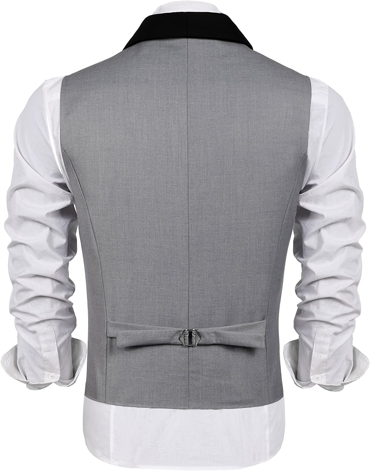 Men's Suit Vest with Pockets and Adjustable Back Belt