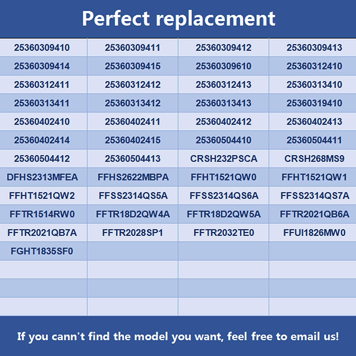 • 【Fit Models】25360002412, 25360082417, 25360504411, 25360504410, 25360504413, 25360504412, 25360082410, 25360082412, 25360082411, 25360082414, 25360082413, 25360082416, 25360082415, 25360402410, 25360402414, 25360402413, 25360402412, 25360402411, 25360402415, FFSS2314QS5A, FFHT1521QW2, FFTR2021QB7A, FFTR2021QB6A, FFTR2028SP1, FFHT1521QW0, FFHS2622MBPA, FFSS2314QS6A, FFHT1521QW1, FFTR1514RW0, FGHT1835SF0, FFTR18D2QW4A, FFSS2314QS7A, FFTR2032TE0, FFUI1826MW0, DFHS2313MFEA, CRSH232PSCA, CRSH268MS9