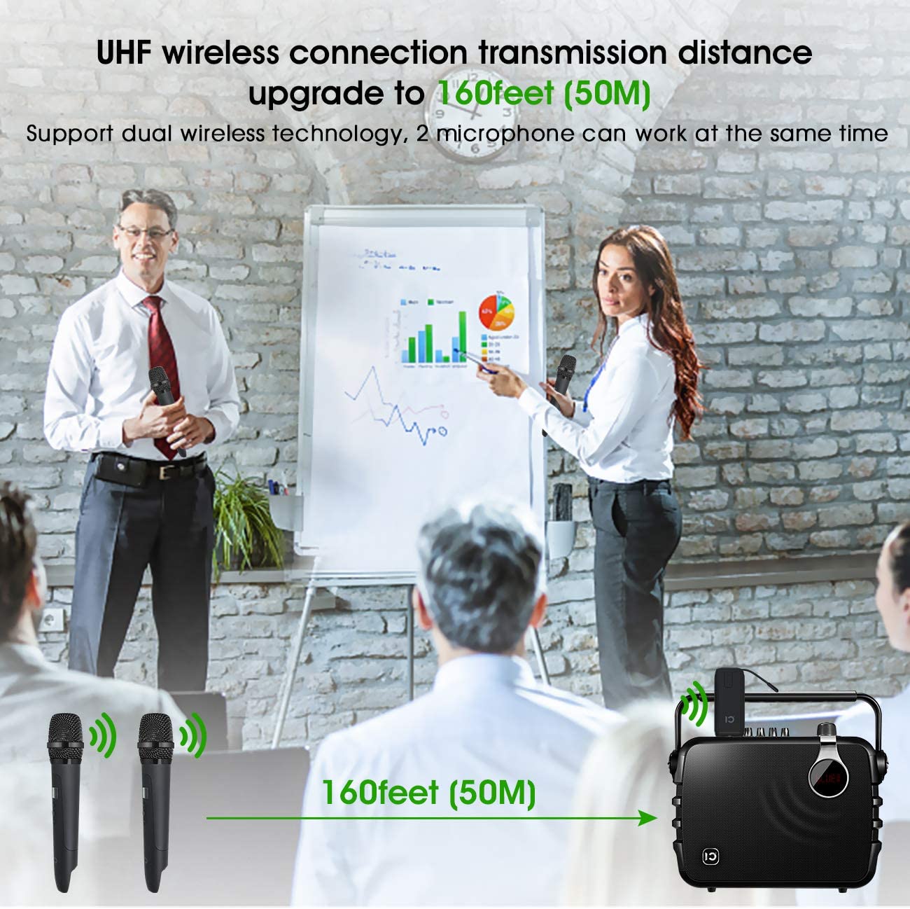 ✔Adopts UHF wireless technology, UHF wireless connection transmission distance upgrade to 160feet (50M);