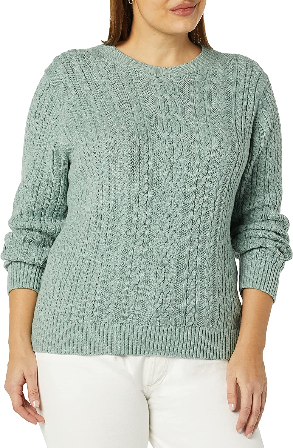 Amazon Essentials Women's Fisherman Cable Long-Sleeve Crewneck Sweater (Available in Plus Size)