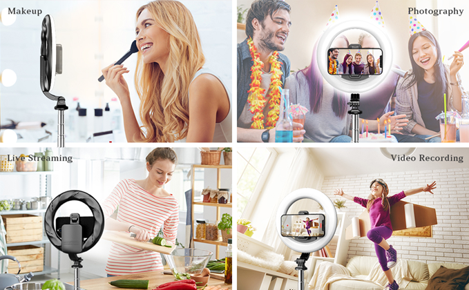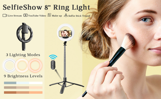 • 【Dimmable Ring Light】Featuring 3 color lighting modes: Warm Light (3000K), White Light (6500K), Mixed Light (4500K) and each mode has 3 brightness levels. SelfieShow ring light will meet all your needs in different circumstances. It is the perfect dimmable lighting to take away all the unflattering shadows.