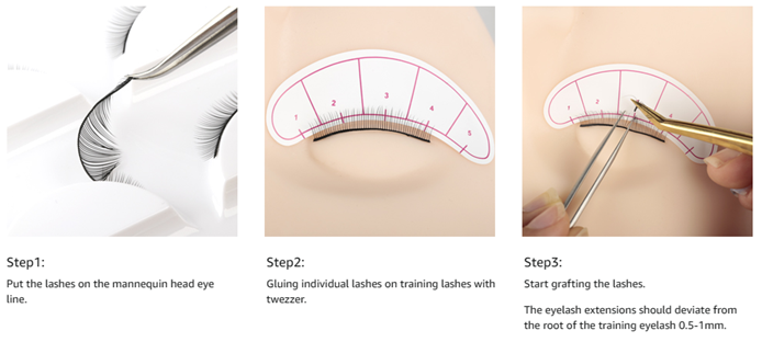 • [SELF-ADHESIVE] There is glue on the band of training lash strips, which can be adhere directly on the lash extension practice head, no additional glue required.