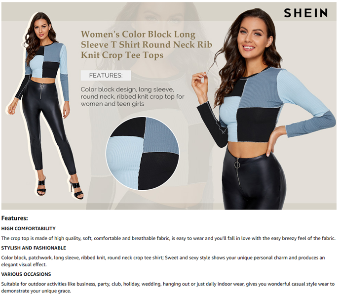 Features: Color block design, long sleeve, round neck, ribbed knit crop top for women and teen girls