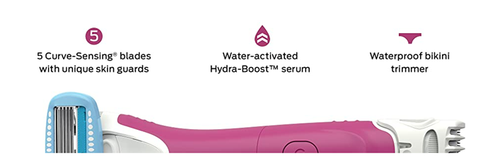 - SMOOTH, COMFORTABLE, CLOSE SHAVE — 5 blade razor features Curve-Sensing Blades with unique skin guards that smooth skin with every stroke, reducing irritation while providing ultimate closeness