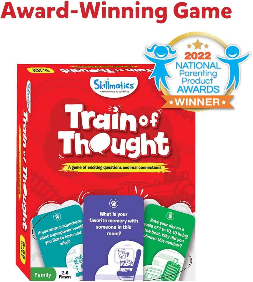 • TRAIN OF THOUGHT CARD GAME - Train of thought is the perfect parental tool to approach playtime and family time. This highly engaging, age-appropriate game of exciting questions & fun challenges can be enjoyed by all ages.