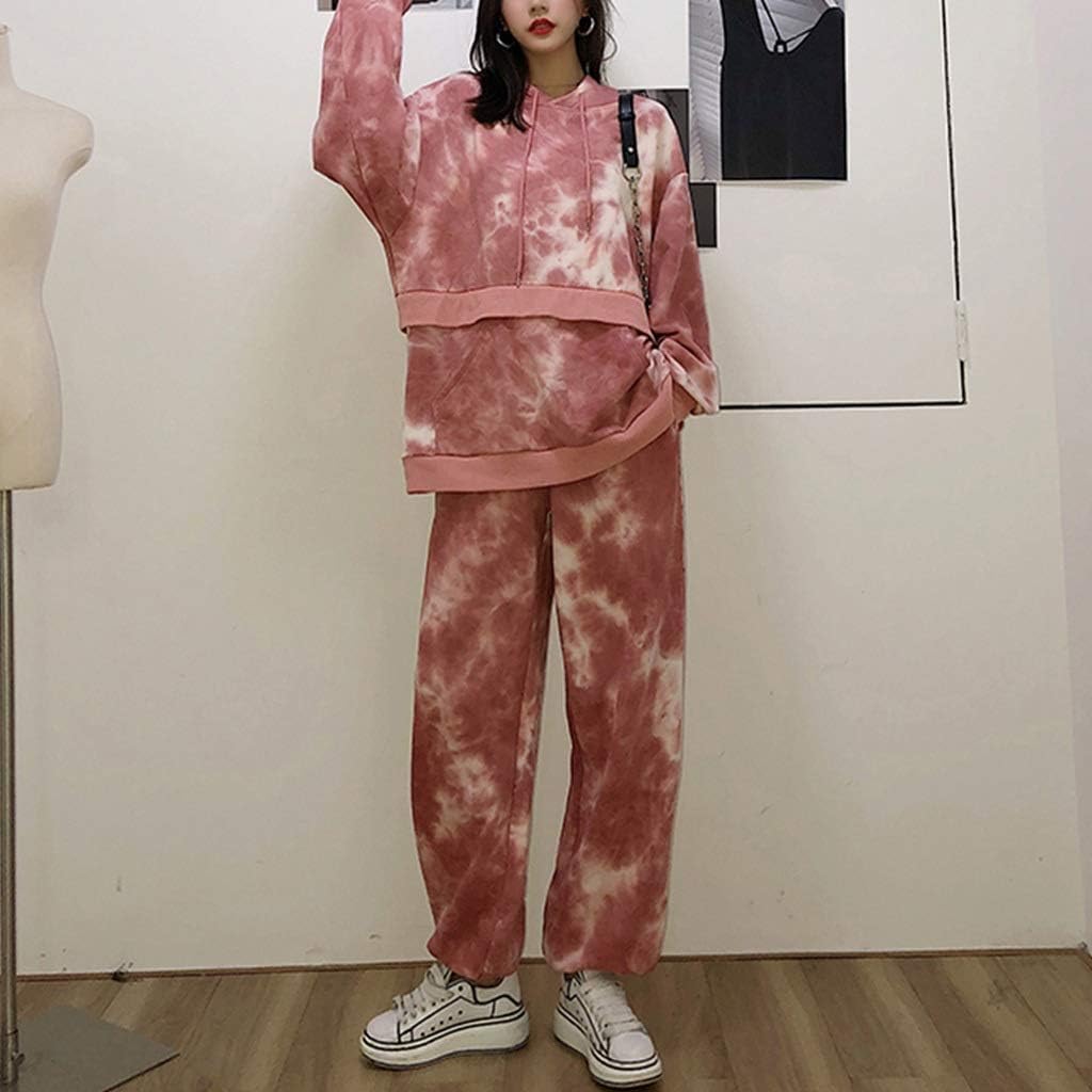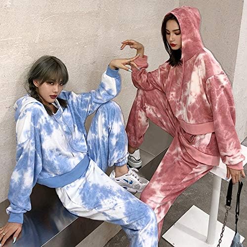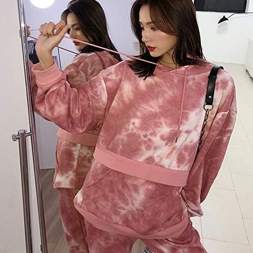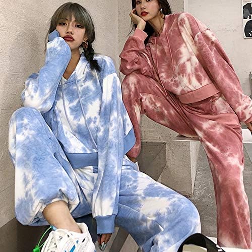 YUTRD ZCJUX Tie Dye Autumn Winter 2 Piece Set Women Hoodies Sweatshirts Tops Long Joggers Pants Sportswear Suits Thicken Female Hoodies Sets (Color : B, Size : Medium)