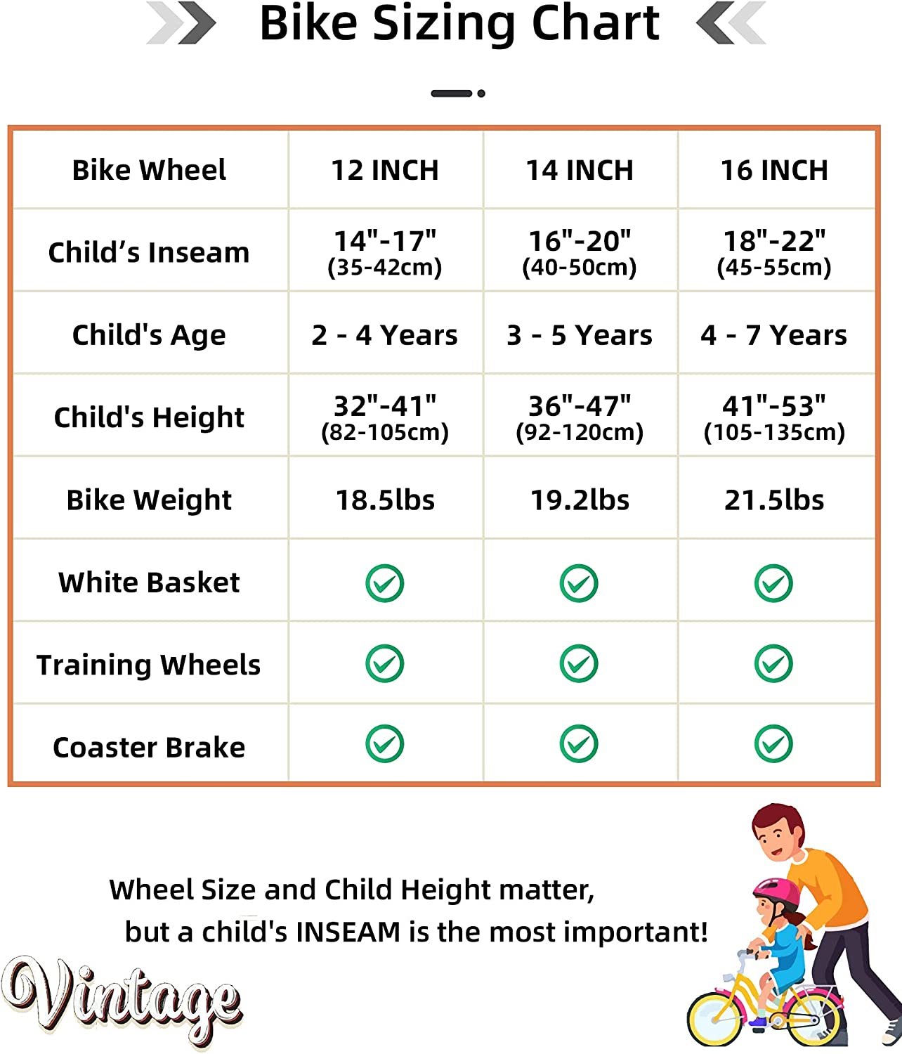 JOYSTAR Vintage 12 & 14 & 16 Kids Bike with Basket & Training Wheels for 2-7 Years Old Girls & Boys (Green, Beige & Pink)