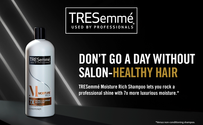 • PAMPER YOUR HAIR: Treat yourself to TRESemmé Moisture Rich hair products—from a conditioning mask to a detangling spray—to create beautiful styles on the go without the hefty price tag.