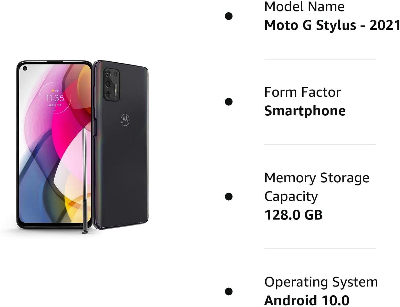 Motorola Moto G Stylus Smartphone, 128GB Storage, Unlocked Cellular - Black (Renewed)