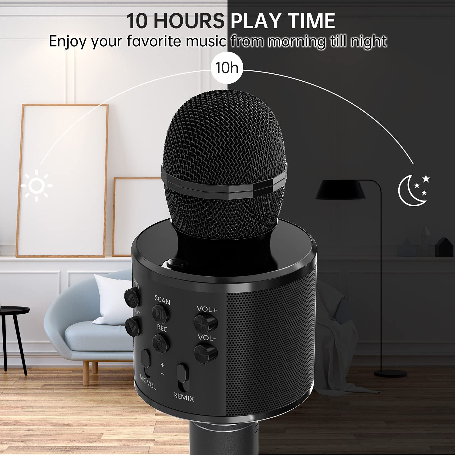 【Great Gifts】The karaoke microphone has a stylish appearance. With this microphone, everywhere is the stage. Let your kids start their little solo concert now. Say goodbye to wired microphone tangles and say hello to the freedom of movement! It is a great birthday or festival gift for your kids, friends, or family.