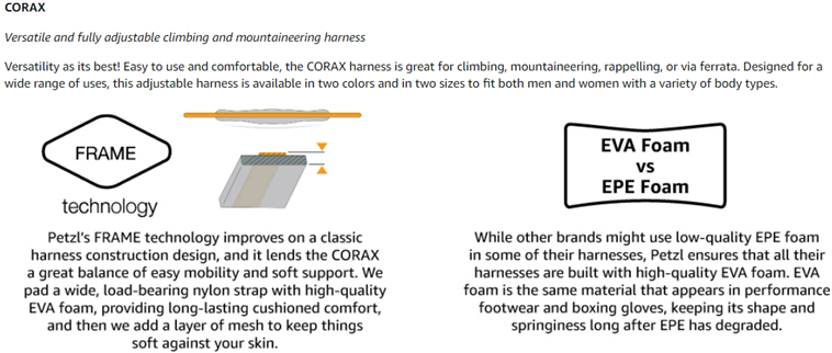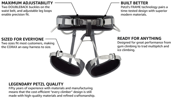 • BUILT BETTER: Petzl’s FRAME technology pairs a time-tested design with superior modern materials, making the CORAX one of the most durable and comfortable harnesses in its class with performance EVA providing support for its entire lifespan.
