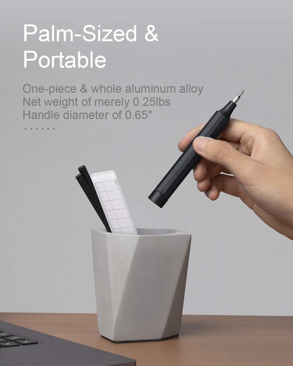 • SLIP-PROOF WITH ALUMINUM ALLOY BODY: The entire screwdriver made with aluminum alloy in one piece and polyhedral surface enables the handle to fit your finger's grip for single-hand operation. And the screwdriver lid has a noiseless bearing to enable smooth turning and easy screwing.