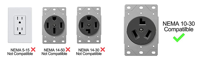 - 【ELECTRICAL RATING】 30A, 125/250V, max wattage 7500 watts, 10 feet, STW NEMA 10-30P male plug and NEMA 10-30R female receptacle, for 3 prong dryer outlet.