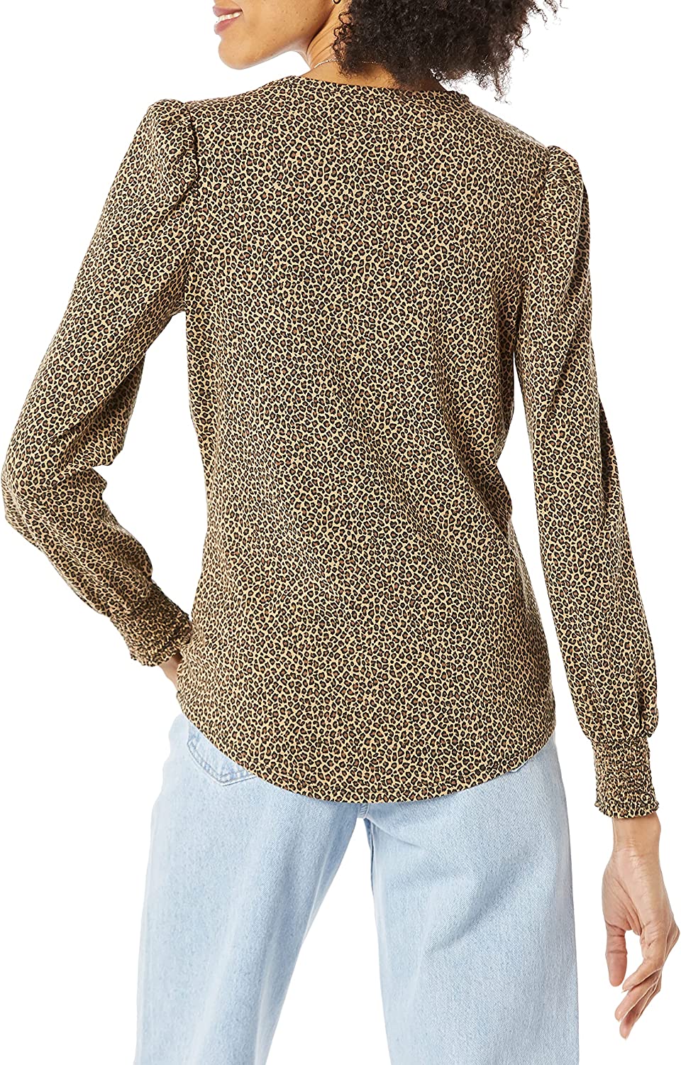 Amazon Essentials Women's Long-Sleeve Crewneck Smocked Cuff T-Shirt