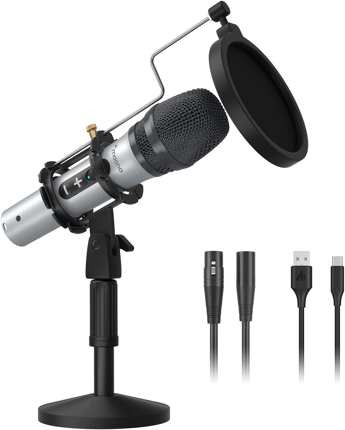 MAONO USB/XLR Podcast Dynamic Microphone, Studio Mic Kit with Volume Control, Shock Mount, Pop Filter, Ideal for Vocal, Instruments Recording, Voice Over, Live Streaming (HD300T)