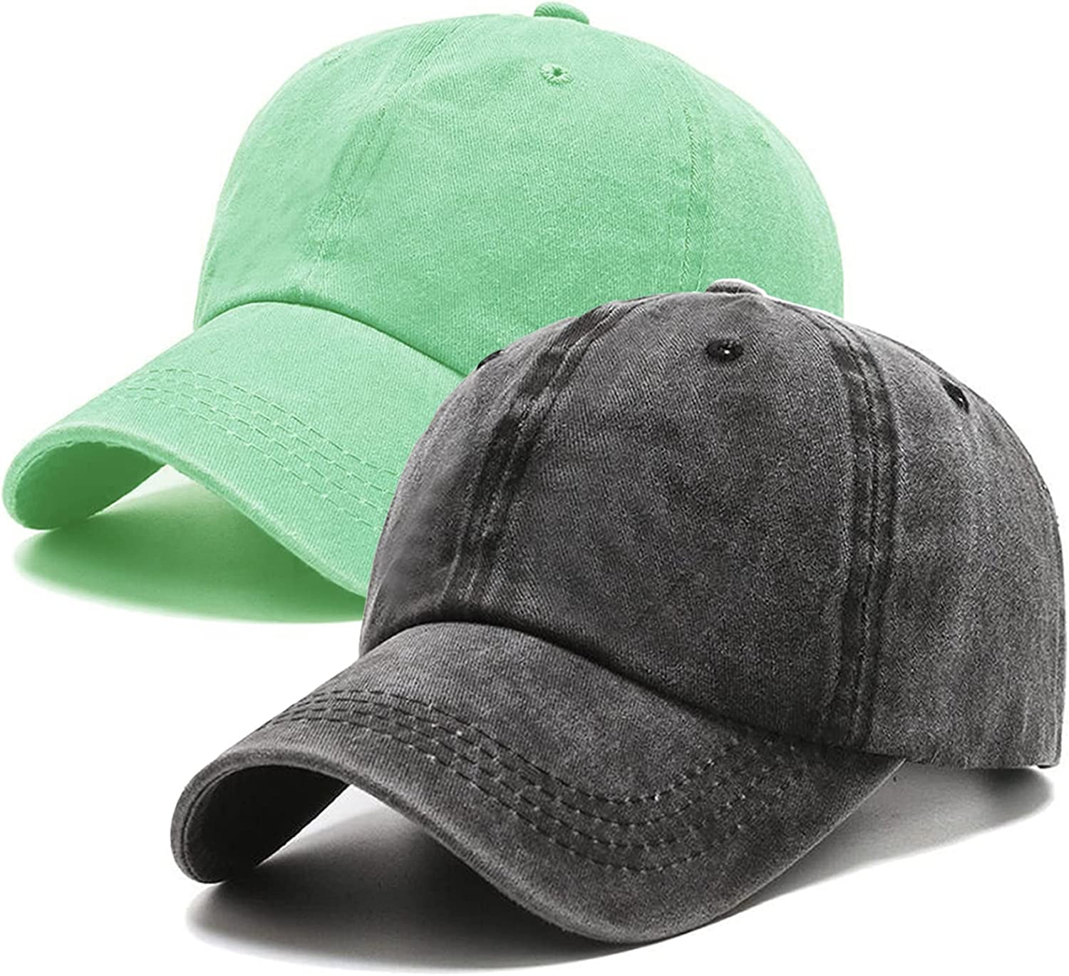 Vintage washed distressed cotton baseball cap, classic and timeless style. Soft fabric in washed style, 99% cotton made, soft, lightweight denim fabric, make sure better comfort wearing. Dad Hat, Low Profile UNCONSTRUCTED.