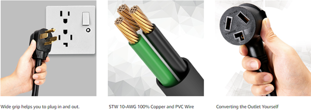 - 【What You Will Get】: 1.5FT dryer adapter 3 prong to 4 prong with UL approved cable and connectors, NEMA 14-30P to 10-30R, 125V/250V, 30 AMP Max, Max 7500 watts