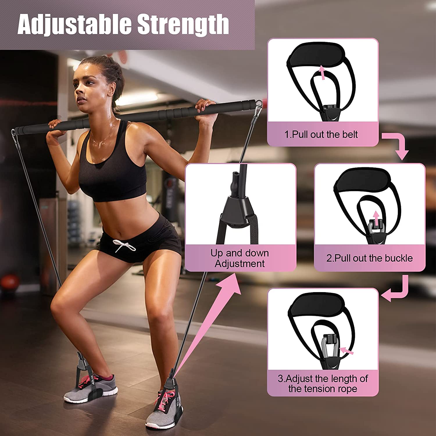 • ✅ 『Upgraded high-quality』Our Pilates bar kit includes a Φ1.0-inch high-quality steel rod, wrapped in soft foam, to provide you with a more comfortable holding experience. It also features widening, non-slip foot belts and thick adjustable latex resistance bands for lasting durability; the strong 360° rotating metal lifting lugs & high-strength alloy buckle are not easy to break, allowing you to easily replace the latex resistance bands and prevent the bands from tangling.