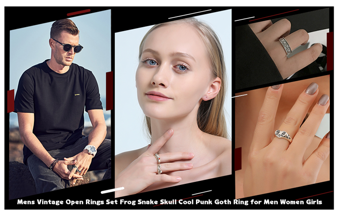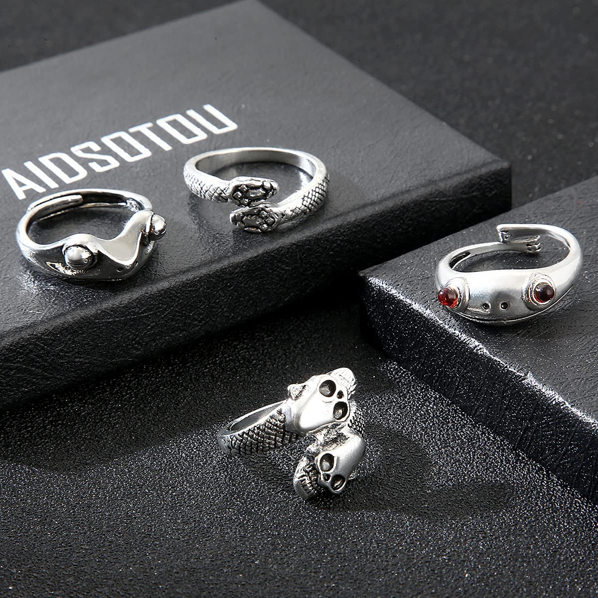 AIDSOTOU Mens Vintage Open Rings Set Frog Snake Skull Cool Punk Goth Ring for Men Women Girls Adjustable