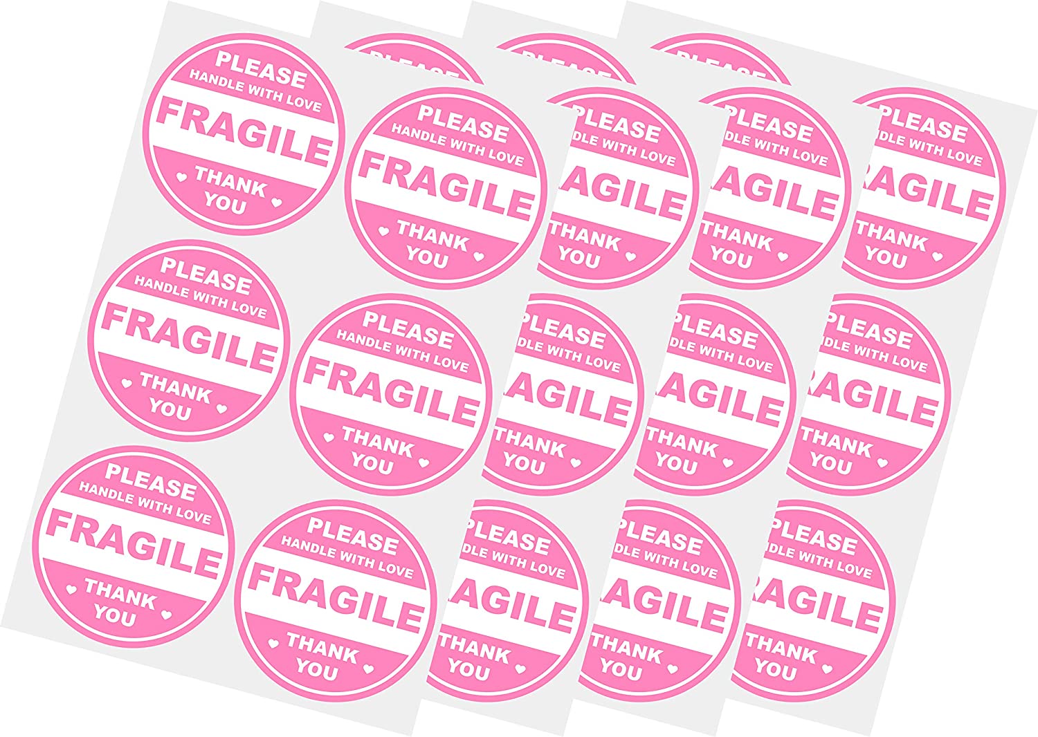 2 inch 300 PCS Pink Round Fragile Labels Circle Fragile Stickers for Shipping Mailing Envelops Cartons Pallets Adhesive Labels-Poskornwel